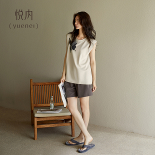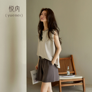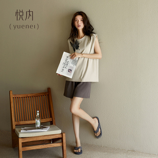 夏季 夏天薄款 无袖 纯棉家居服夏款 背心短裤 悦内带胸垫一体睡衣女款