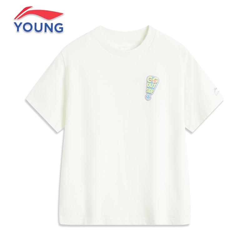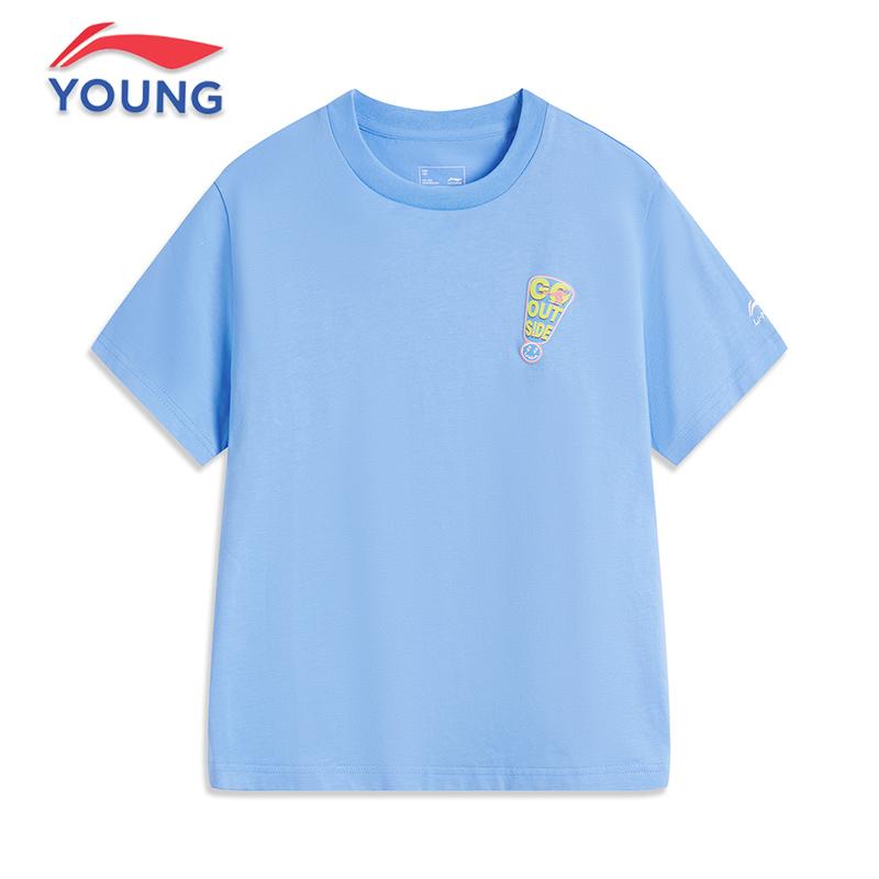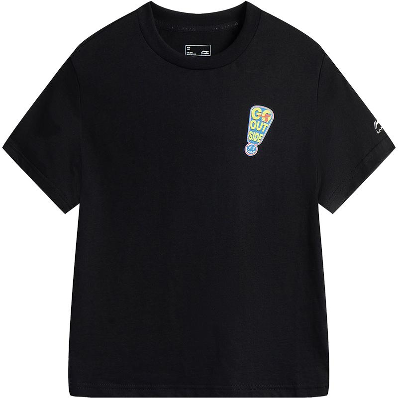 运动服 文化衫 李宁男女大童纯棉T恤2025夏新款 100%棉吸湿排汗短袖