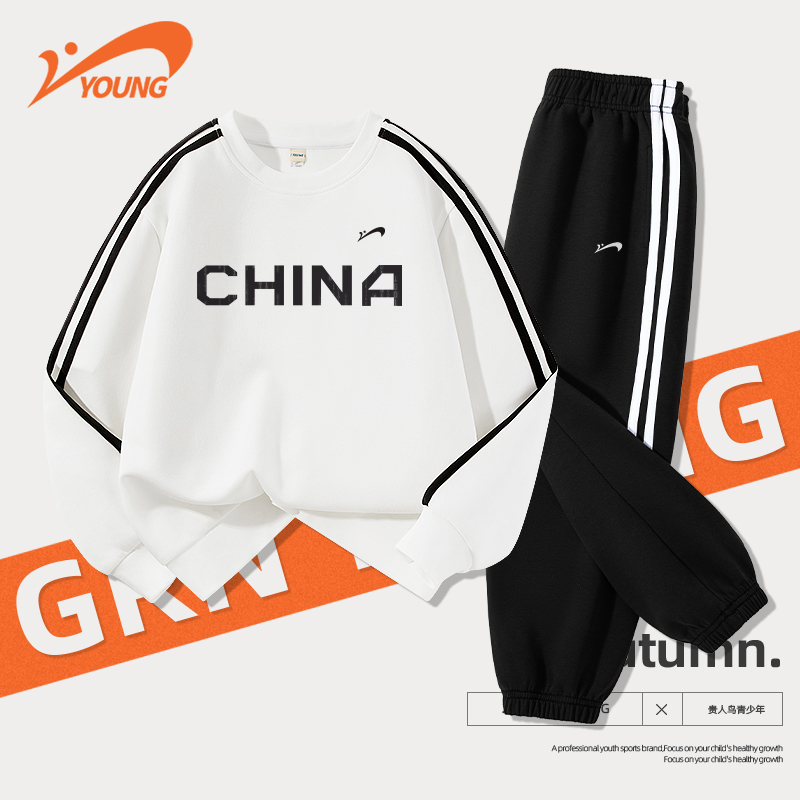 儿童秋季 贵人鸟童装 2025新款 套装 帅气卫衣大童条纹运动服 男童秋装