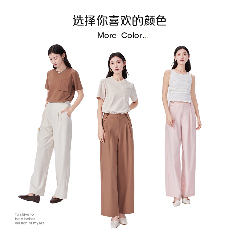 垂感高级感顺滑休闲裤 艾莱依奥莱抗皱宽松阔腿裤 直筒裤 春季 女新款
