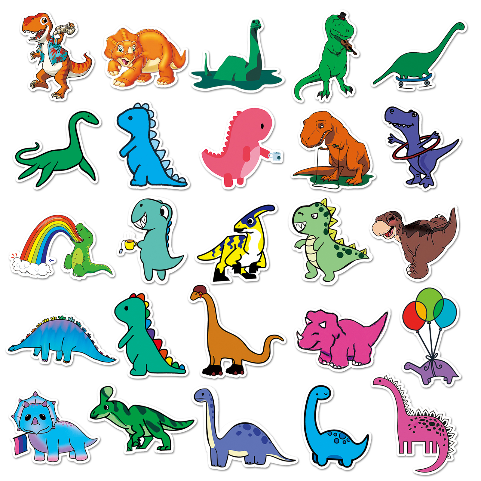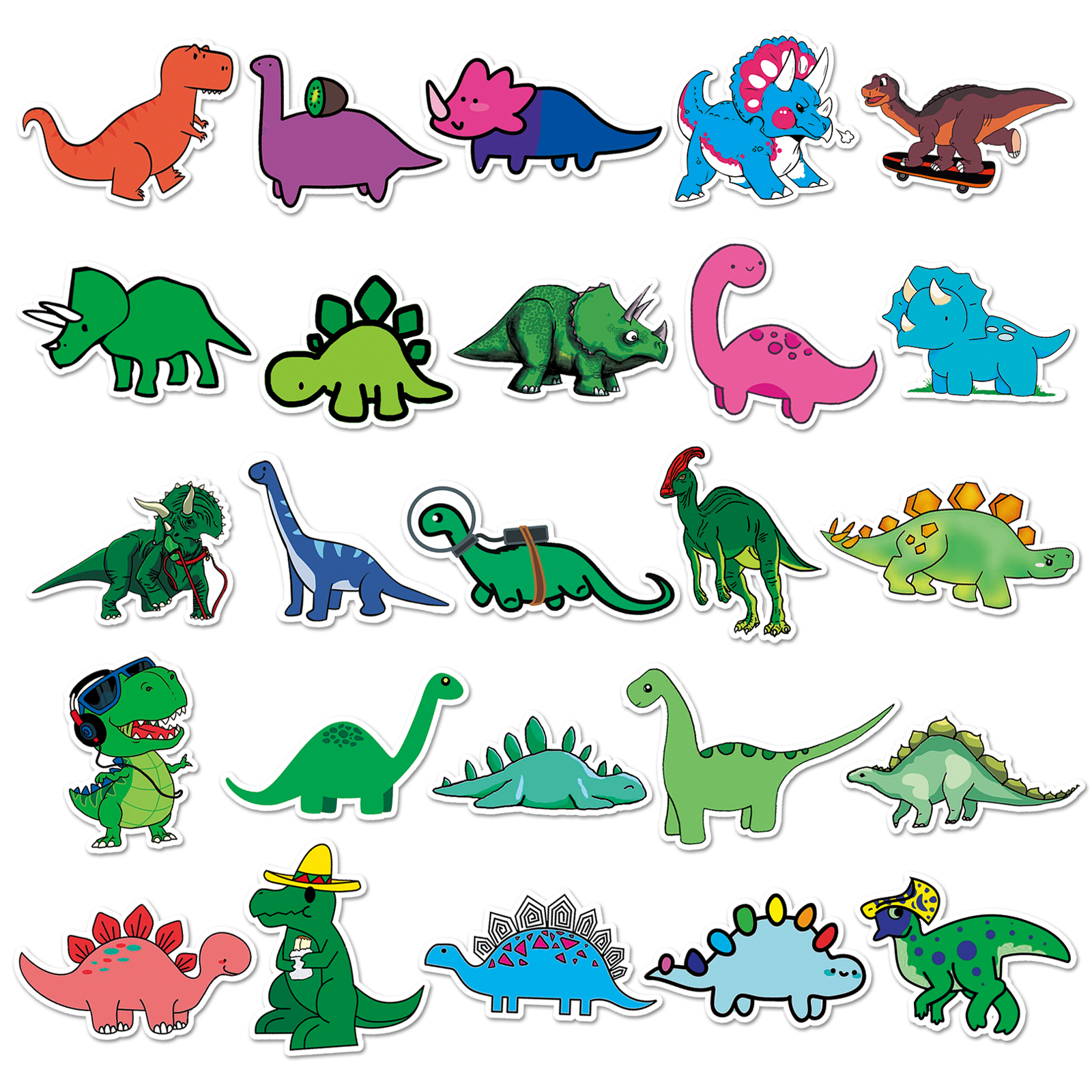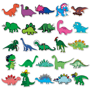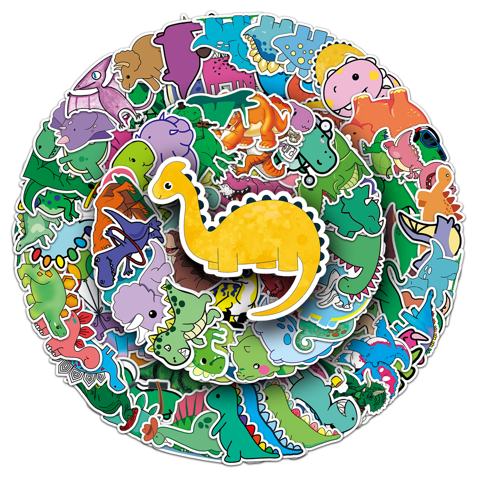 100张小恐龙贴纸霸王龙可爱卡通个性 饰小贴画滑板冰箱平板吉他自行车手机壳充电宝笔记本防水贴纸 创意涂鸦装