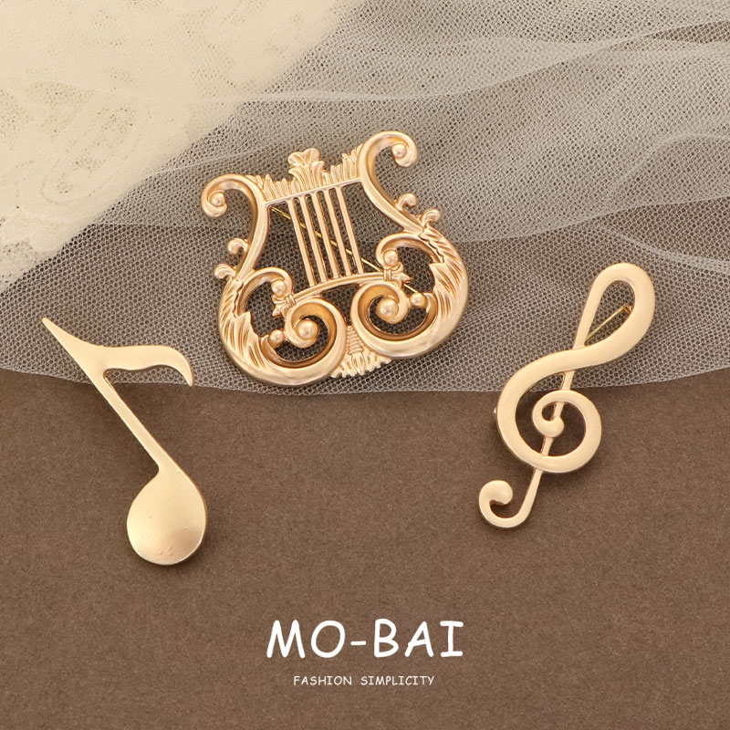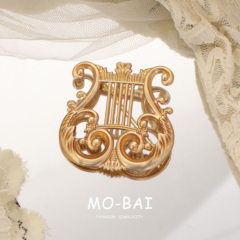 复古艺术竖琴胸针中古典雅立体胸花宫廷风男女衣饰镀哑光合金别针