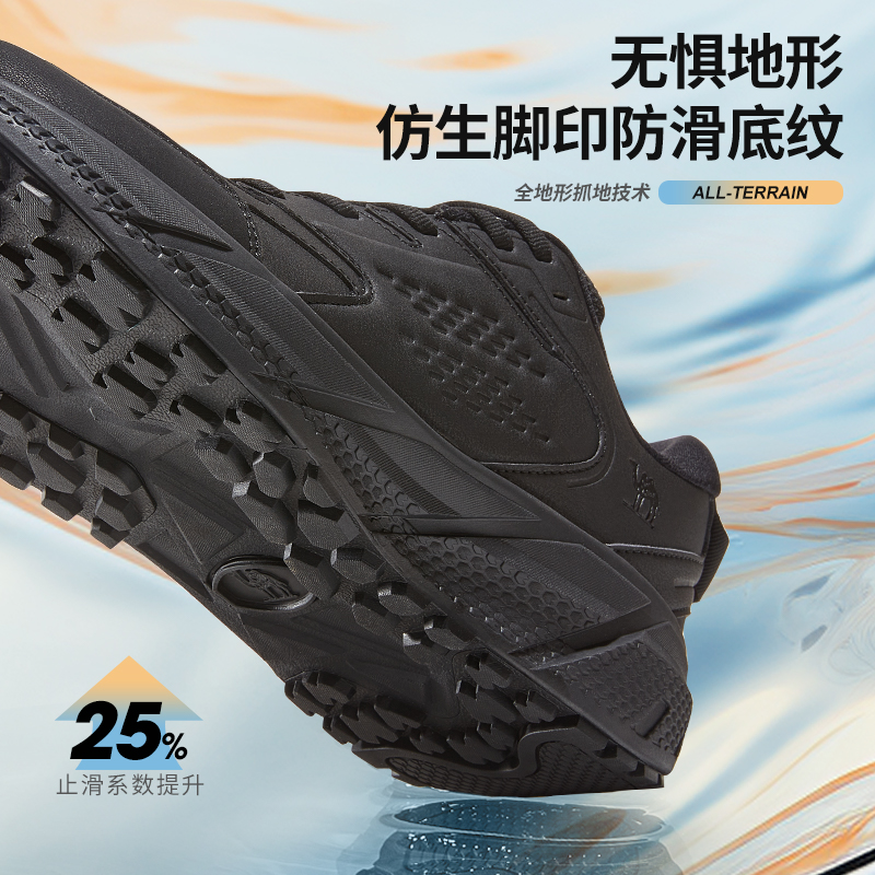 轻便软底减震休闲黑色爸爸跑鞋 秋冬跑步鞋 男鞋 乔丹皮面防水运动鞋