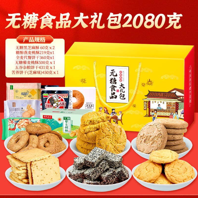 无糖食品大全糕点饼干中老年人糖尿病人专用零食重阳节送礼大礼包