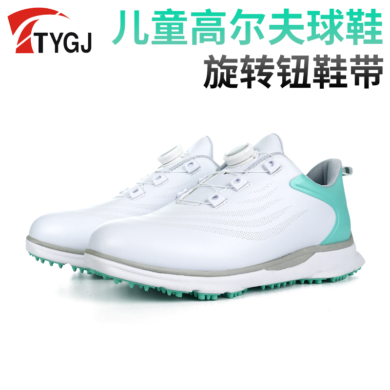 带防滑防水运动青少年鞋 带快速系鞋 子 男女童旋钮鞋 儿童高尔夫球鞋