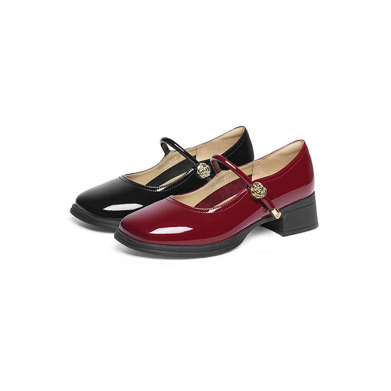 单鞋 60580280圆头一字带粗跟玛丽珍鞋 CK1 CHARLES&KEITH秋冬女鞋