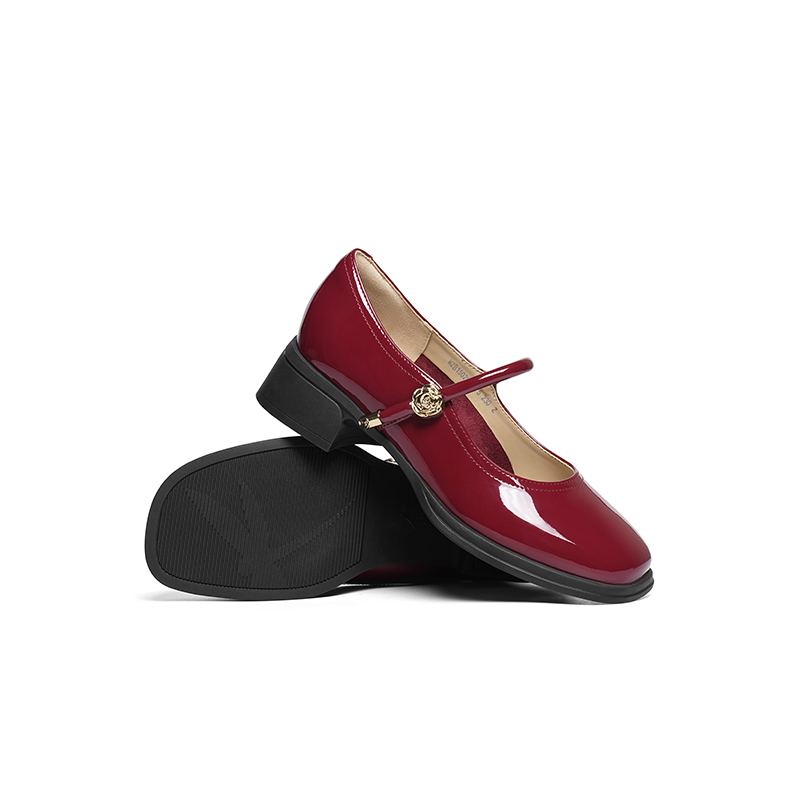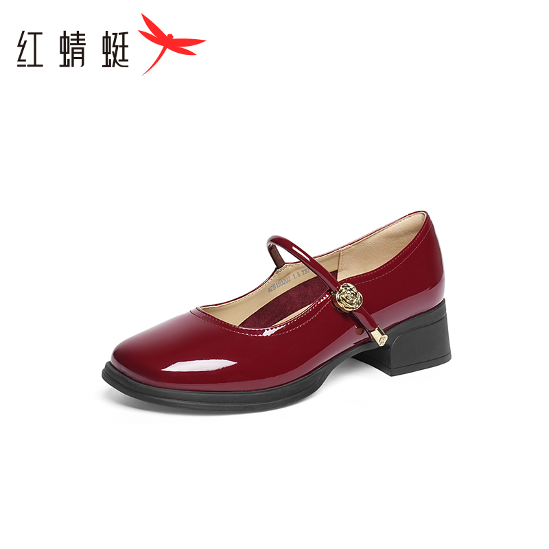 新娘鞋 婚鞋 舒适鞋 子绝美平底女鞋 红蜻蜓红色玛丽珍鞋 小皮鞋 女单鞋