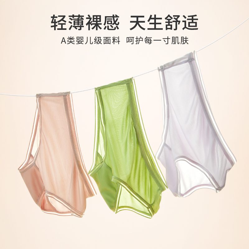 运动性感三角新款 透气不夹臀美式 女 蕉内银皮301S女士纯棉内裤 3件