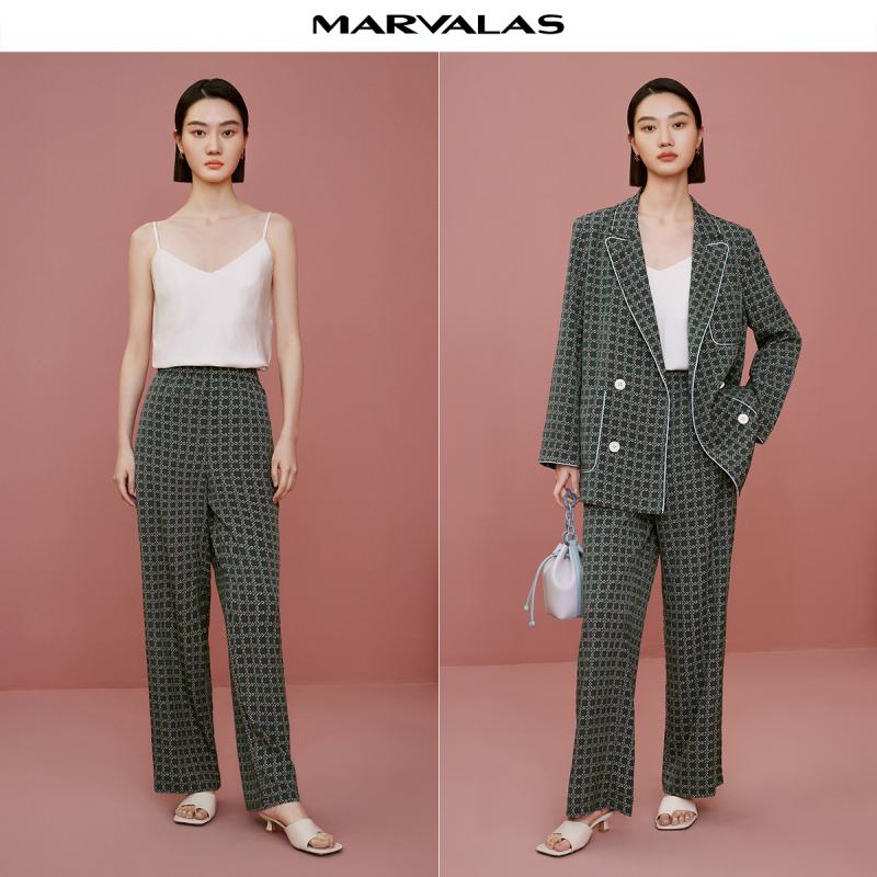 2025夏装 宽松长裤 新款 国风复古印花休闲裤 新中式 曼德诗撞色直筒裤
