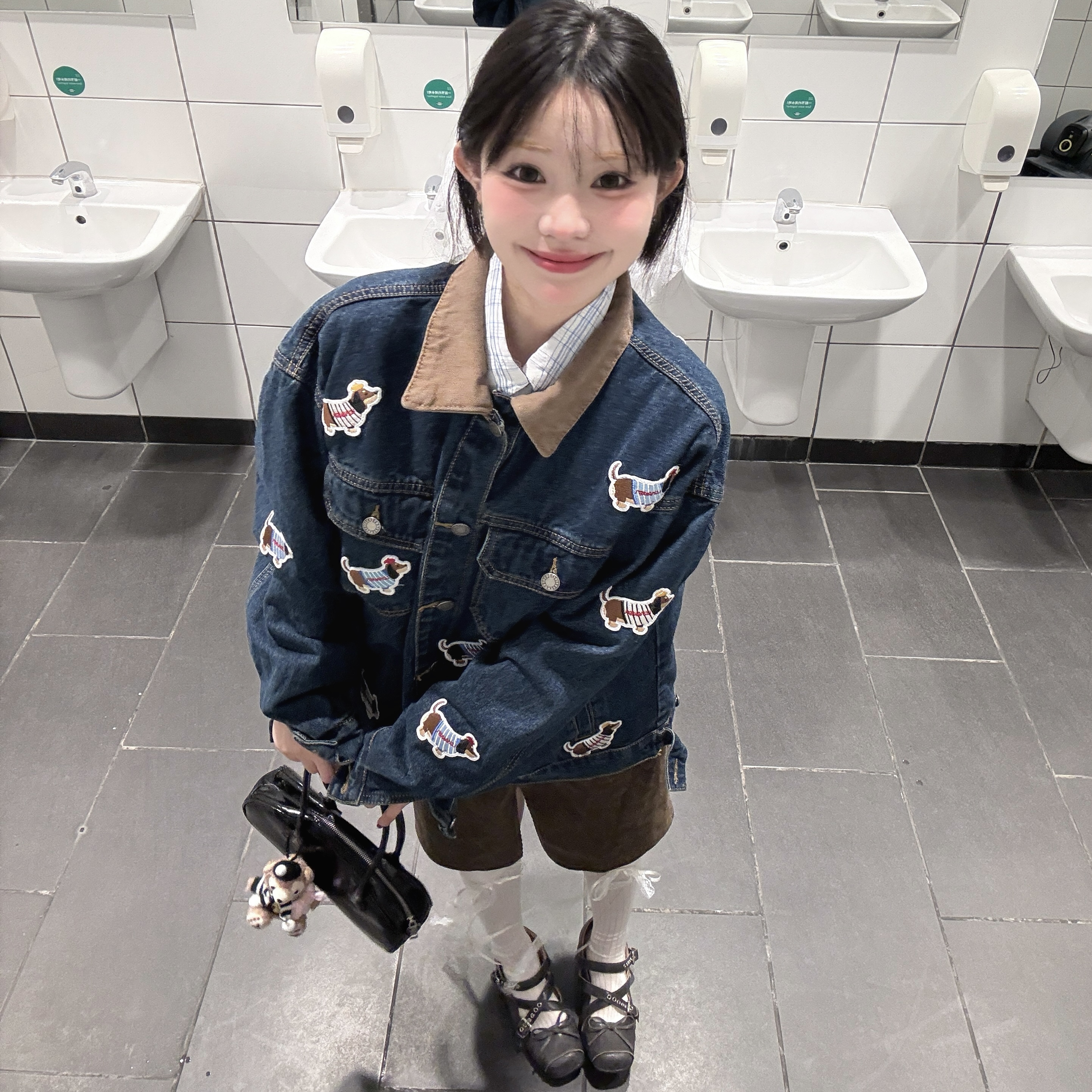 lemanism潮牌腊肠狗绣标牛仔外套男2025春秋情侣款 复古夹克女 美式