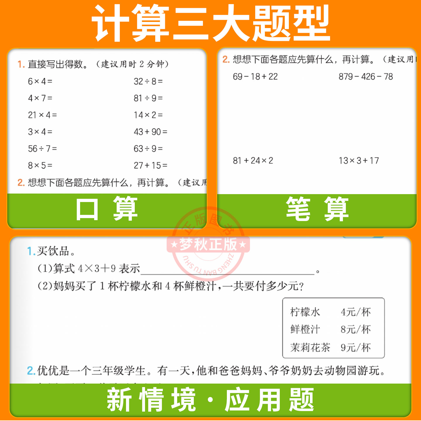 一二三四六五年级上册下册口算题卡口算题天天练计算题强化专项训练练习册寒假衔接 应用题三合一江苏版 2025苏教版 小学数学口算竖式