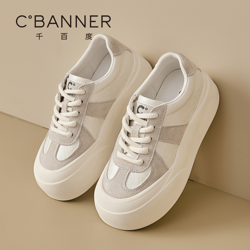 平底百搭真皮休闲运动德训鞋 复古小白鞋 女2025新款 千百度厚底板鞋