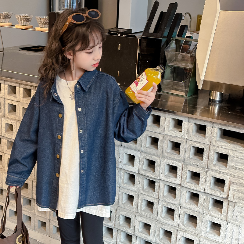 衬衫 薄款 中大童外穿女孩长袖 玉婴坊女大童春秋牛仔外套2025新款