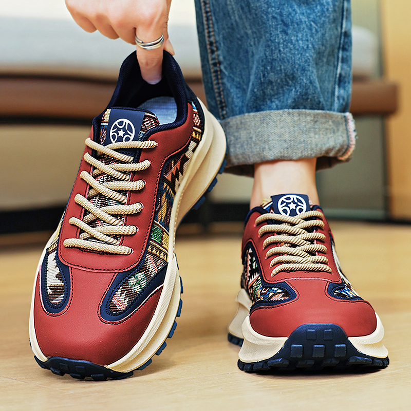 运动休闲软底防滑本命年红色小众印花阿甘老爹潮鞋 欧洲站男鞋 秋季