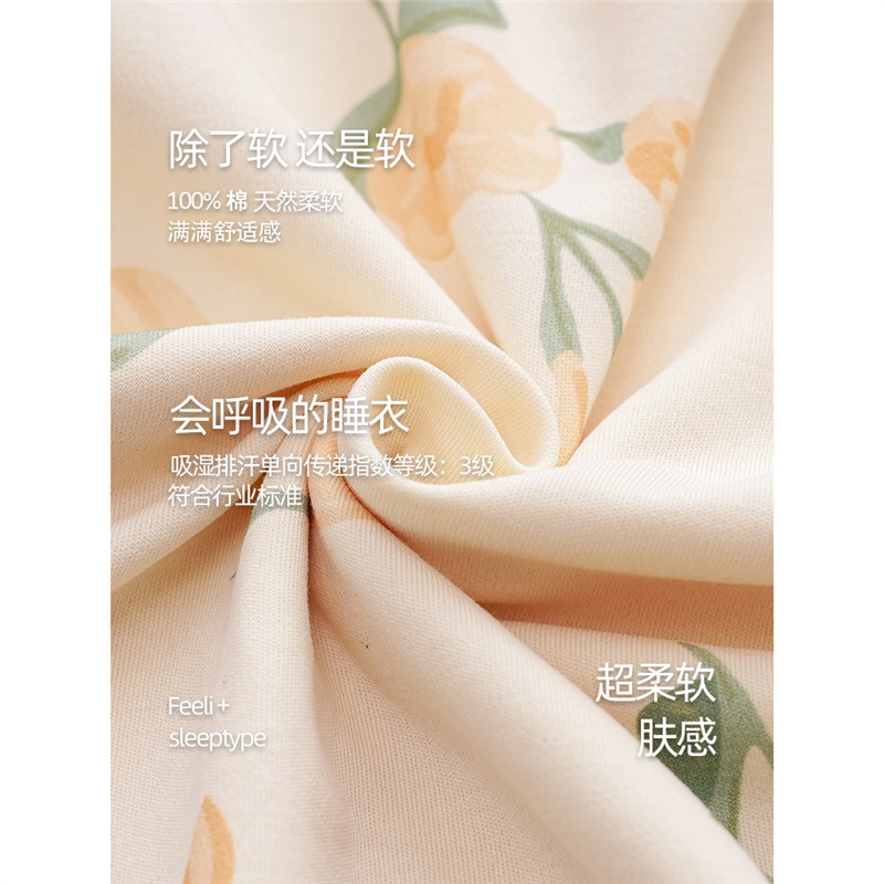 女士睡衣居家服 家居服套装 有棵树植物停螨纯棉睡衣女款 春秋长袖