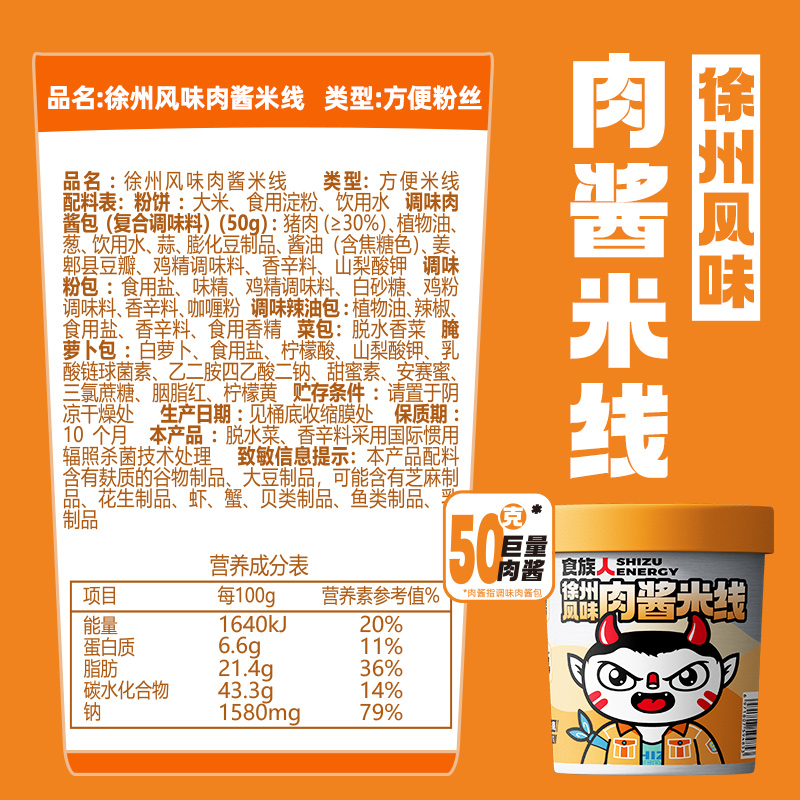 食族人徐州肉酱米线桶装 豌豆酸辣粉 麻酱米粉牛肉面爆肚粉速食经典