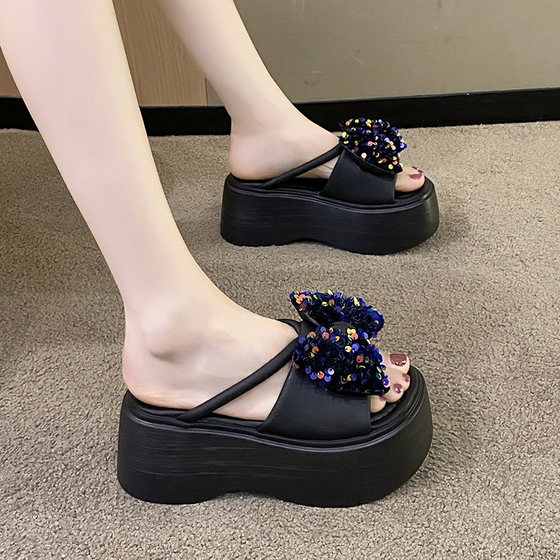 百搭2025新款 网红坡跟拖鞋 爆款 外穿蝴蝶结时尚 增高厚底凉拖 女夏季