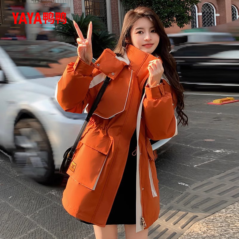 韩国大口袋连帽长款 宽松百搭加厚白鸭绒外套 羽绒服女冬2025年新款