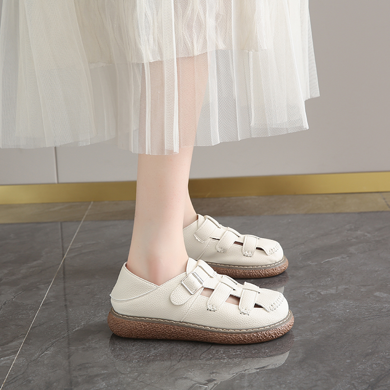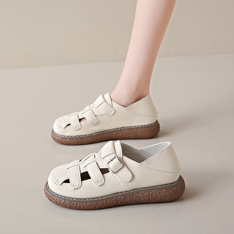女款 女夏季 2025新款 厚底包头半拖鞋 外穿 海边沙滩凉鞋 玛丽珍洞洞鞋