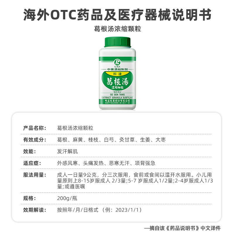 科达制药风寒感冒药咳嗽流鼻涕鼻塞止疼退烧中成药葛根汤 自营
