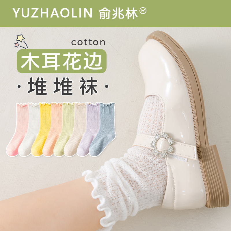 女童袜子夏季 纯棉长筒堆堆袜儿童女孩公主花边中筒网眼袜夏天 薄款