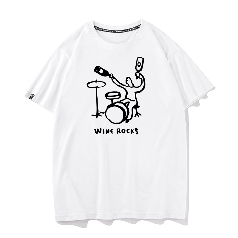 T恤上衣 复古设计感小众oversize男女情侣短袖 秀洛WINE ROCKS美式