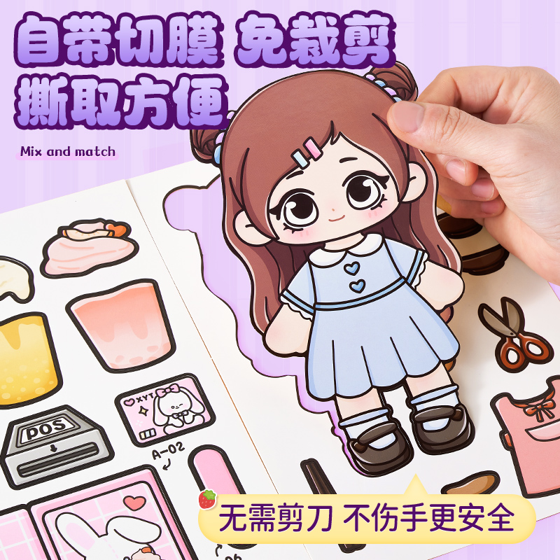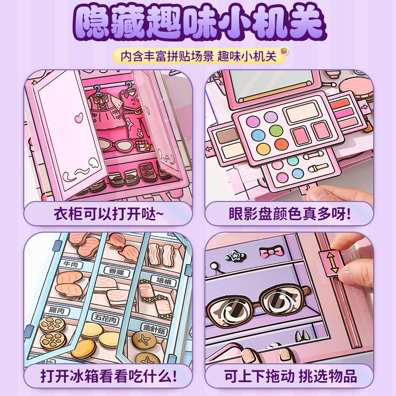 安静书新款 贴纸手工diy公主化妆贴画书玩具6 女孩子儿童免裁剪换装