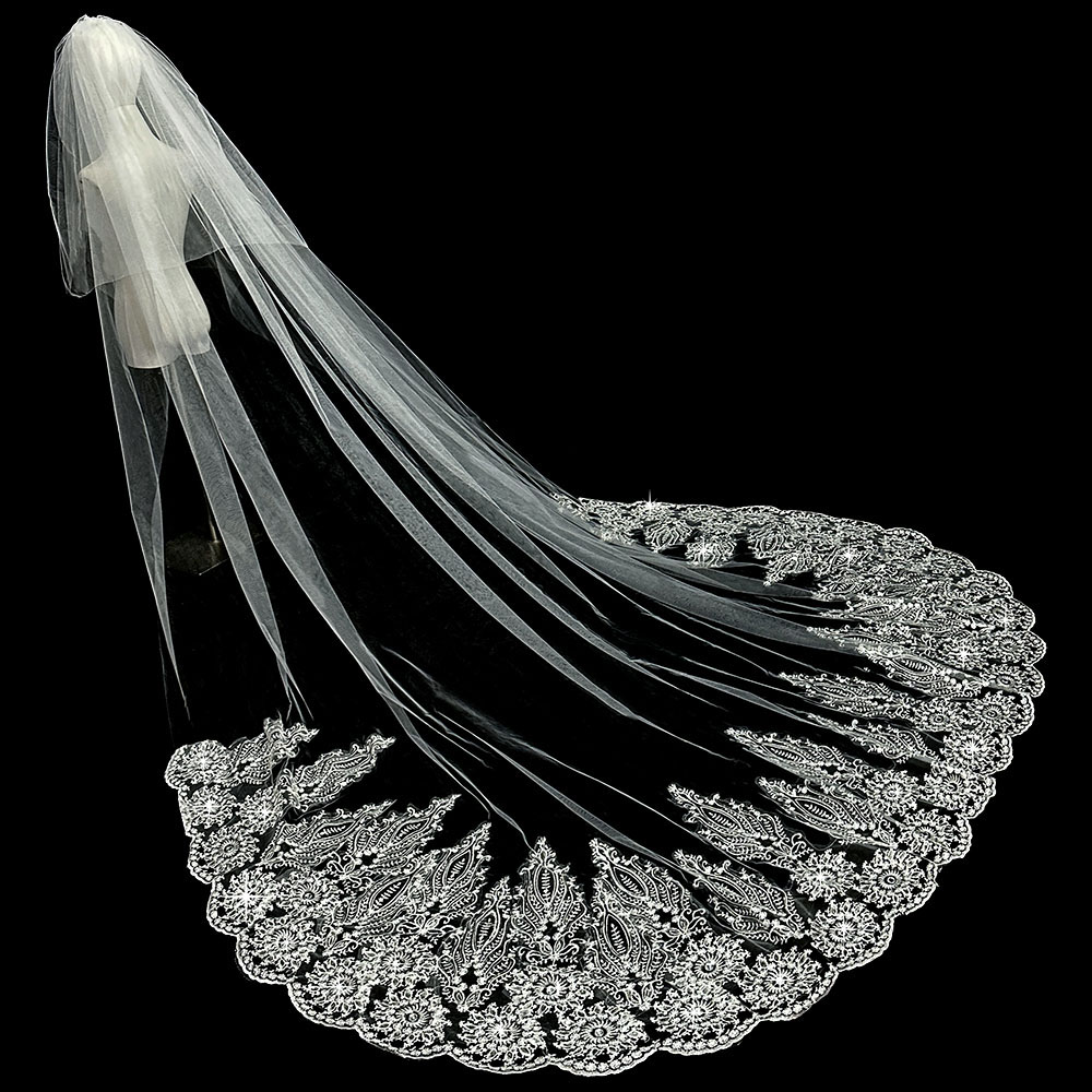 新娘结婚主婚纱头纱超仙森系蕾丝亮片头纱婚礼长款 大拖尾头纱头饰