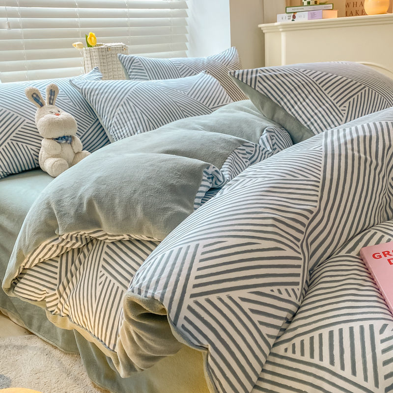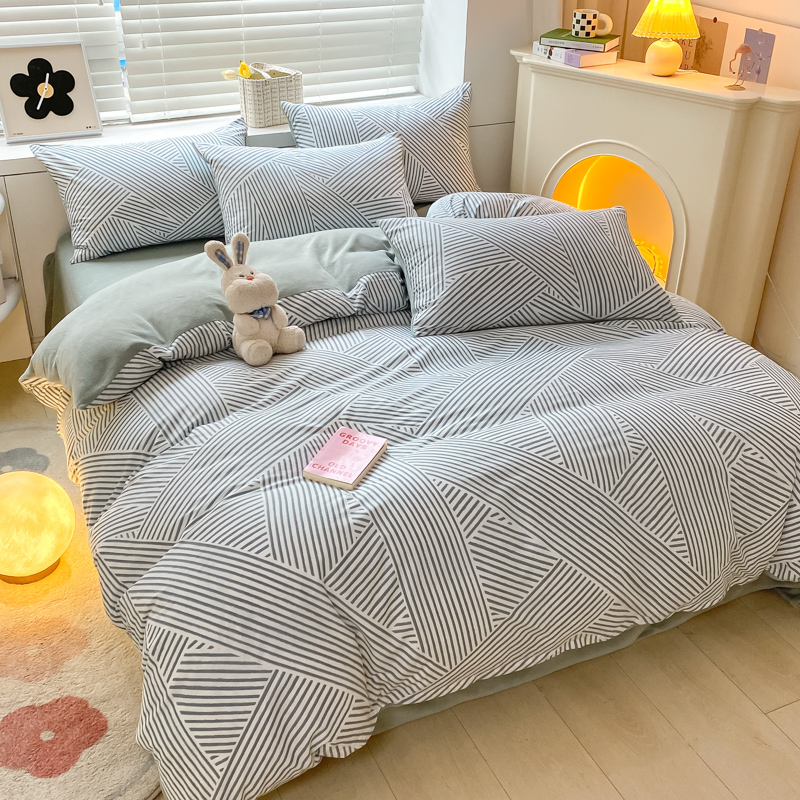 无印良品全棉床单学生宿舍纯棉卡通儿童被套秋冬三件套床上用品