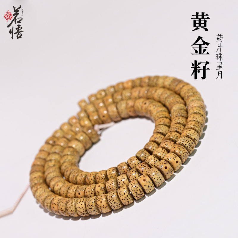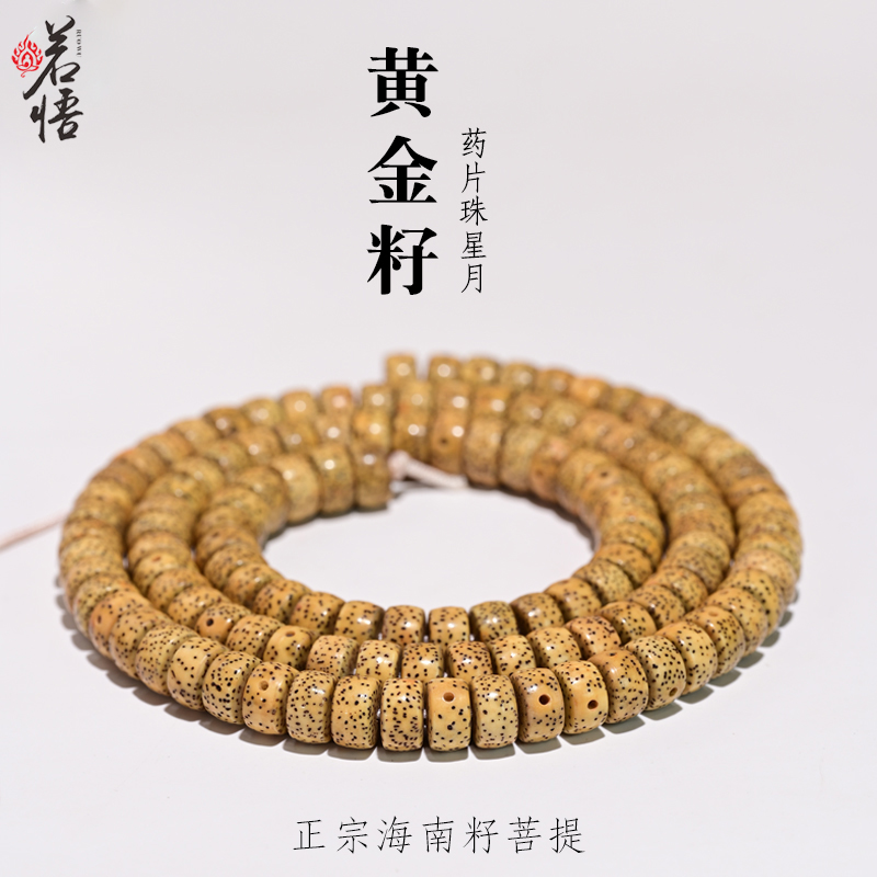 鸡油黄星月菩提原生态高抛高密度黄金籽直切桶珠药片珠108颗项链