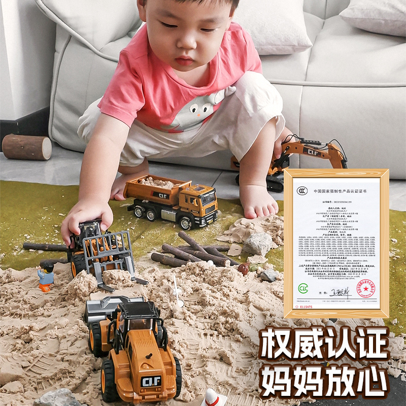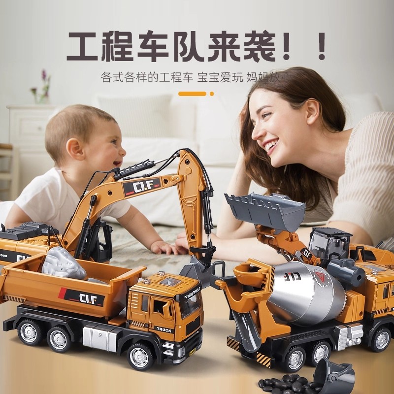 儿童挖掘机挖机工程车玩具车男孩搅拌挖土机合金套装 大号吊车模型