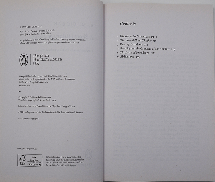 萧沆 解体概要 History Short Decay Cioran 企鹅当代经典 衰变简史 进口图书 英文正版 现货