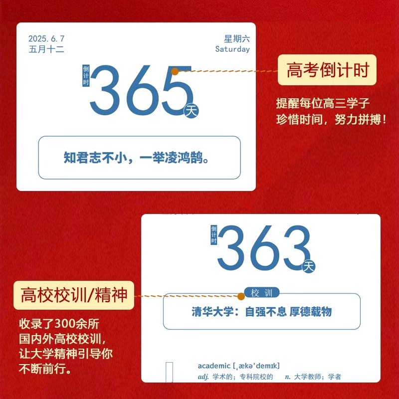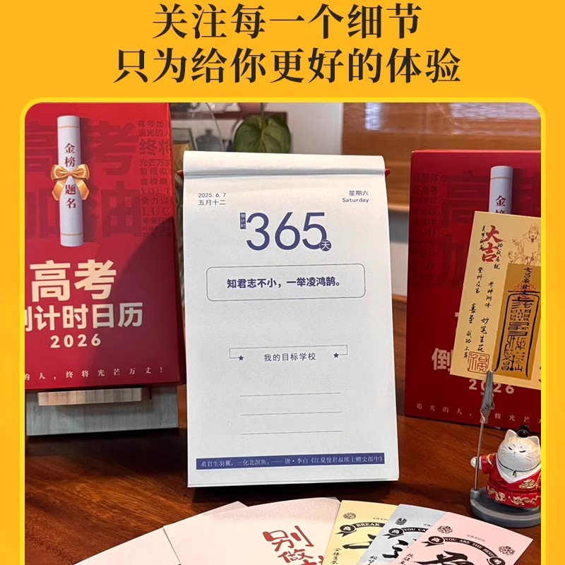 书签 明信片 高考倒计时日历2026 高考倒计时日历正版 高分作文开头结尾数学知识梳理预测题英语高频词 陪伴高考冲刺 赠必过符