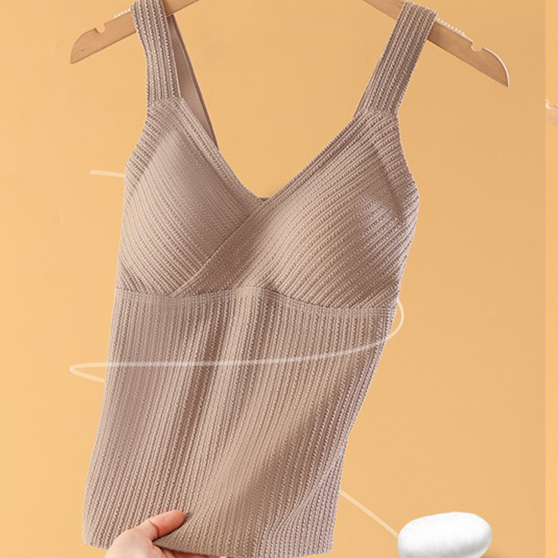 泡泡芙德绒双层发热V领中长款 保暖背心百搭秋冬打底女士内衣8813