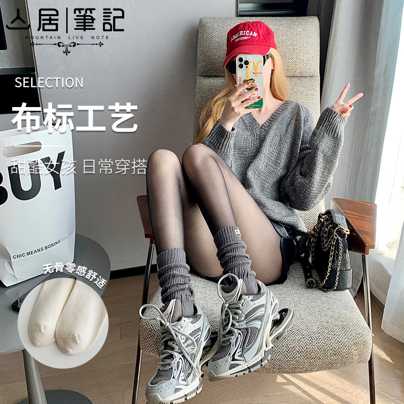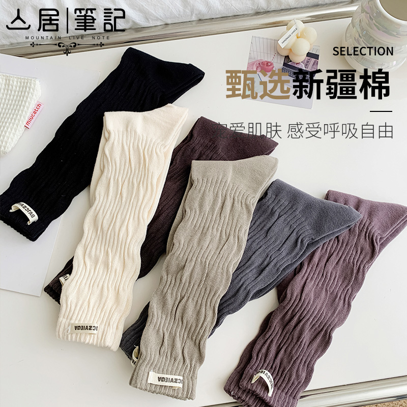 长袜 白色搭配拖鞋 无骨袜子女春秋款 中筒袜纯棉防臭堆堆月子袜夏季