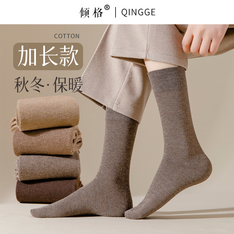 棕咖色月子长袜 乐福鞋 木耳边堆堆袜子女秋冬季 纯棉中筒袜配小皮鞋