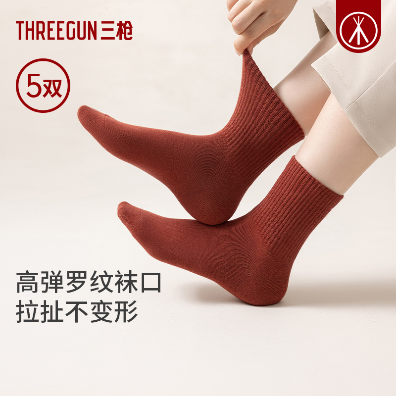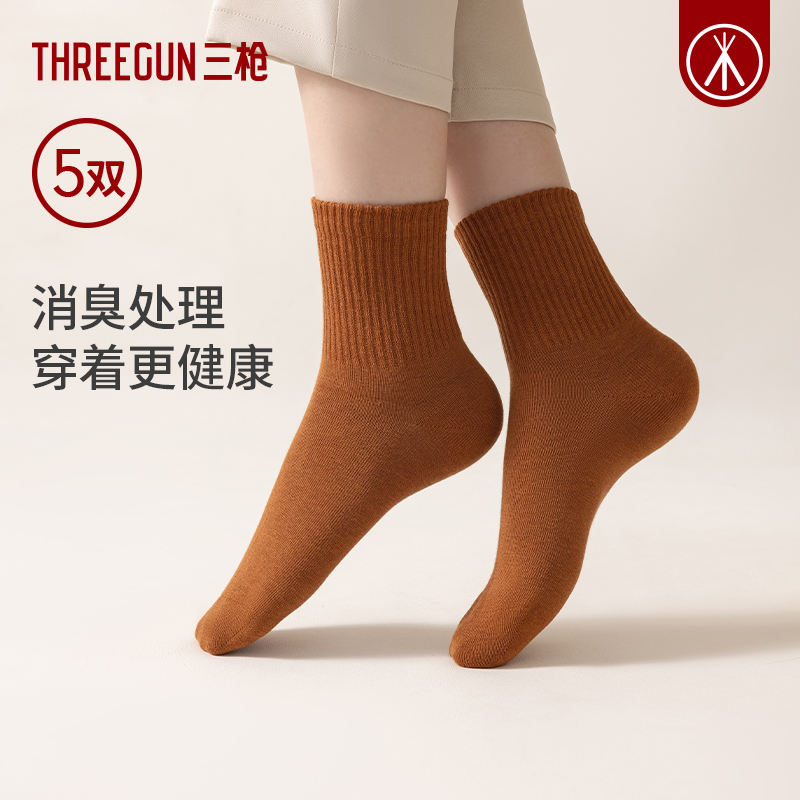 美拉德不掉跟女袜子男 三枪弹力棉中筒袜情侣7A抗菌防臭夏季 5双