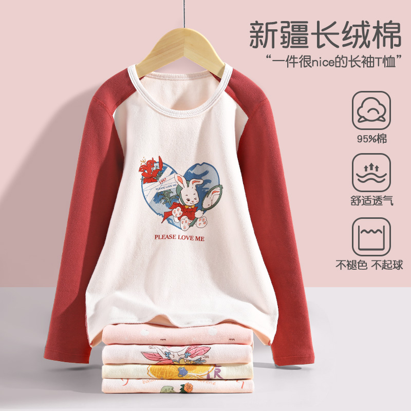 女童秋衣单件t恤纯棉a类上衣儿童衣服女宝线衣宝宝打底衫 女孩睡衣