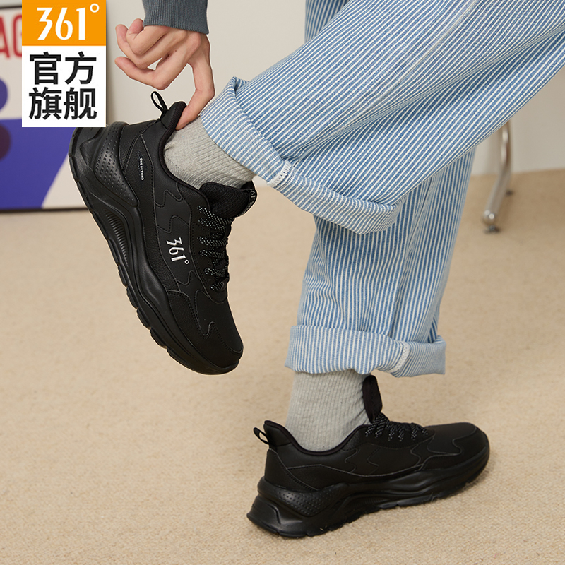 运动鞋 子黑色透气跑步鞋 女款 防水休闲老爹鞋 2025春秋新款 361女鞋