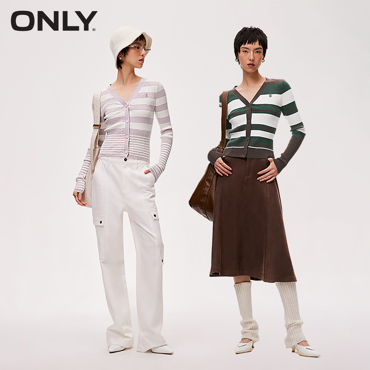 针织衫 条纹短袖 长袖 开衫 毛衣外套 RARN2025秋装 两件套圆领修身 新款