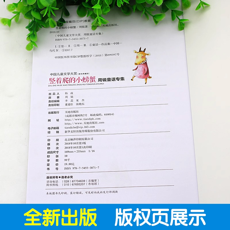 中国儿童文学大赏美绘典藏版 小学生课外书必读经典 儿童文学读物童书故事书 竖着爬 天地出版 周锐 非注音版 社GJ 小螃蟹