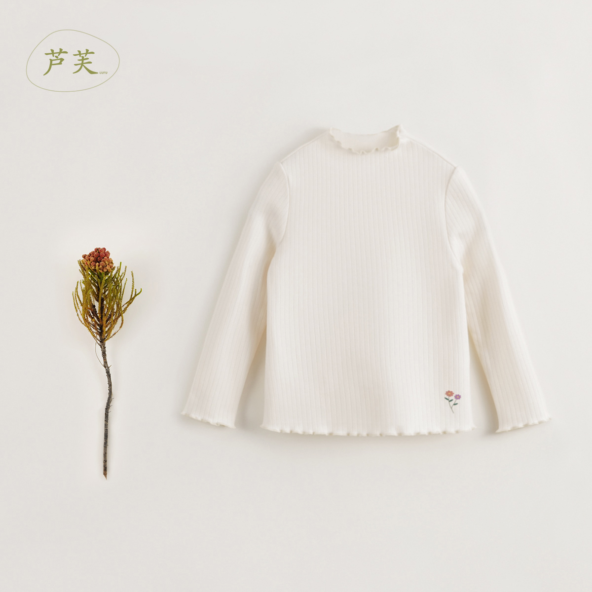 儿童秋冬T恤 马克珍妮女童新年红花边立领条纹发热打底衫 芦芙