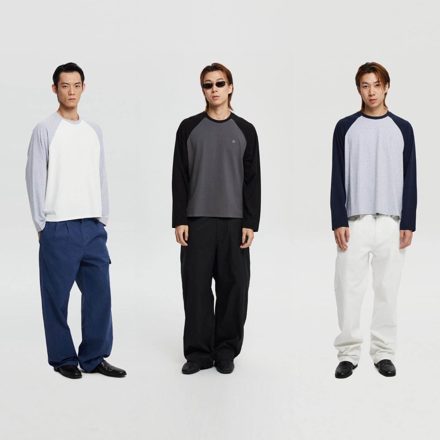 T恤慵懒松弛感情侣上衣男女 磨毛宽松长袖 Oneup秋冬2025新款 插肩袖