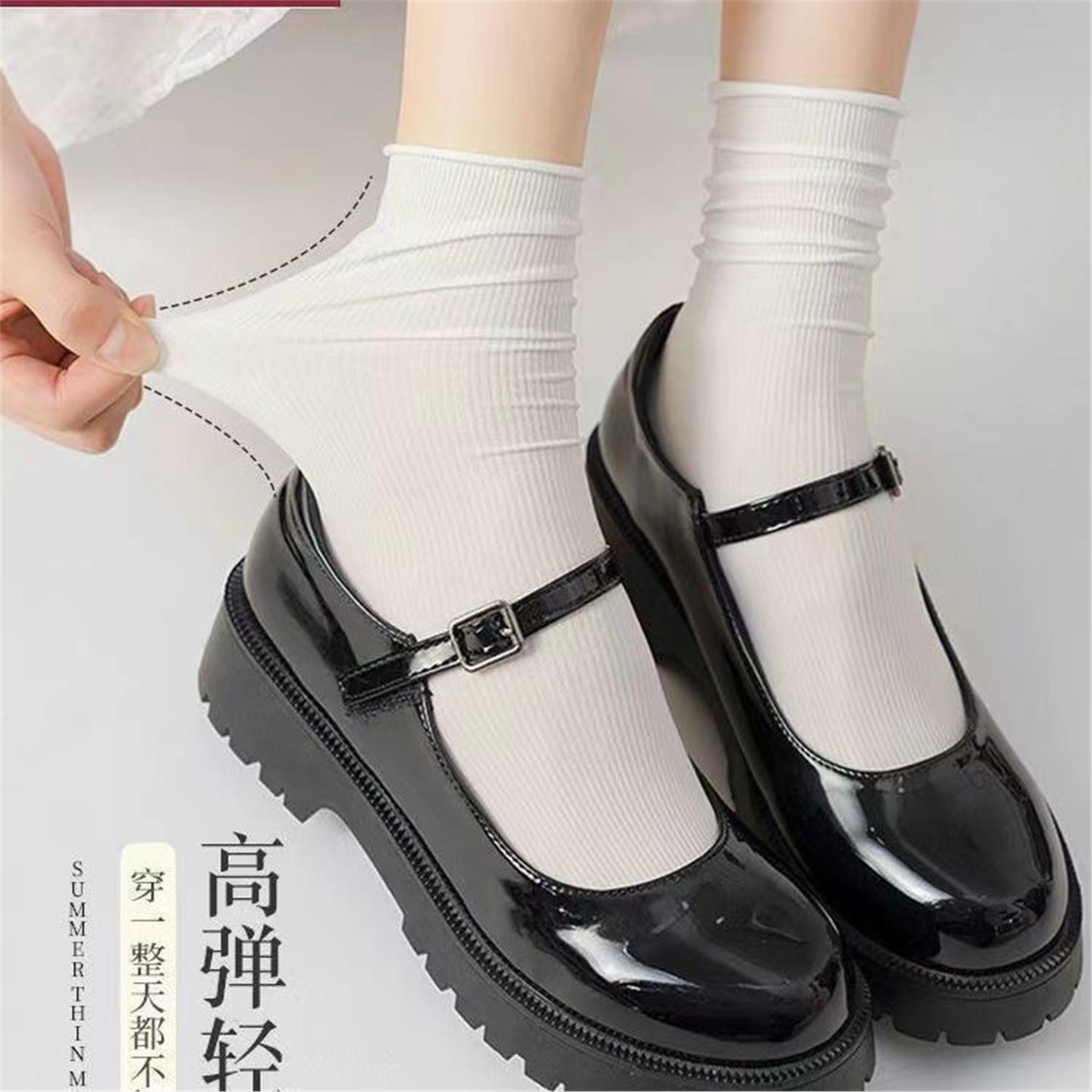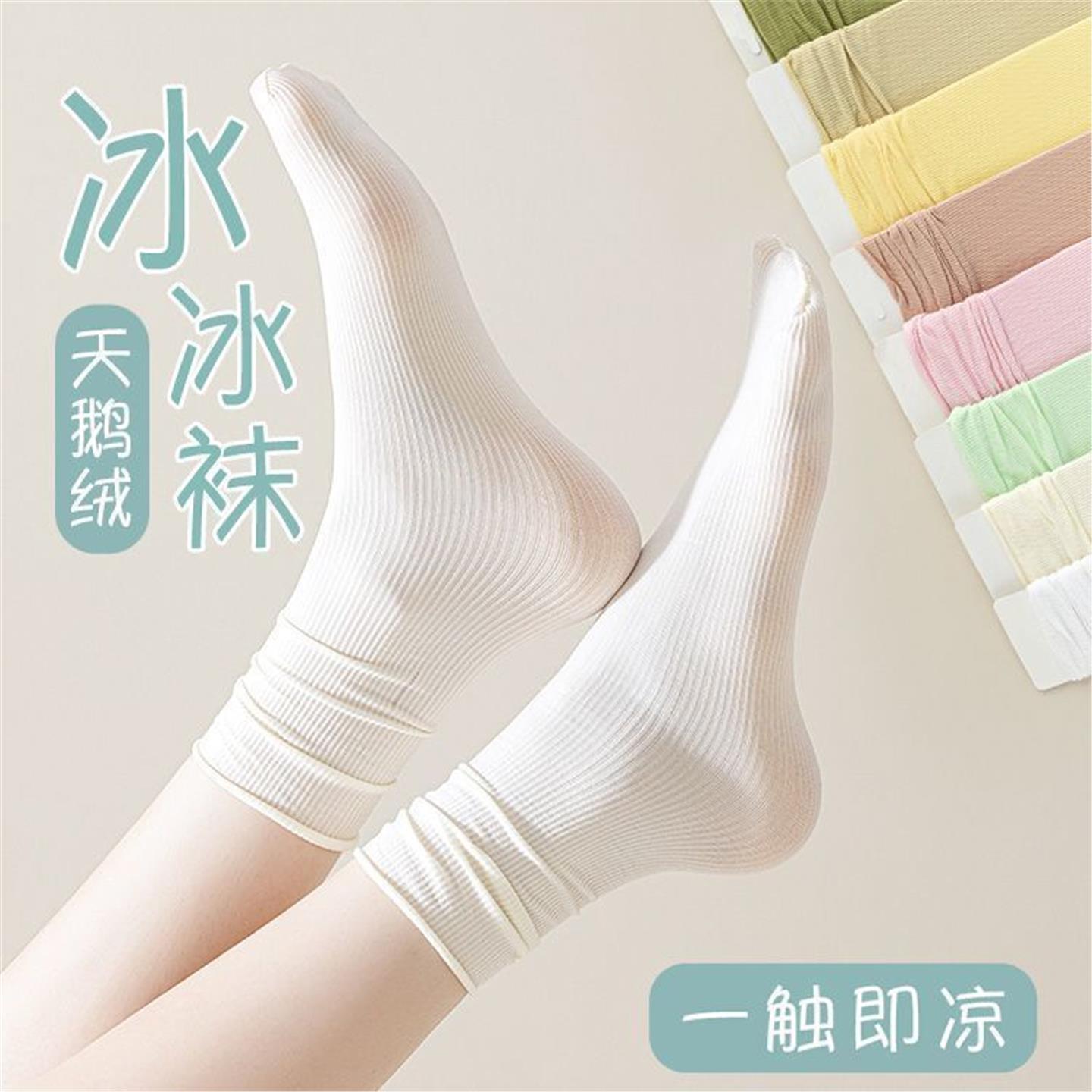 10双冰冰袜子女薄款 天鹅绒中筒黑色长筒百搭冰丝 无骨堆堆袜春夏季