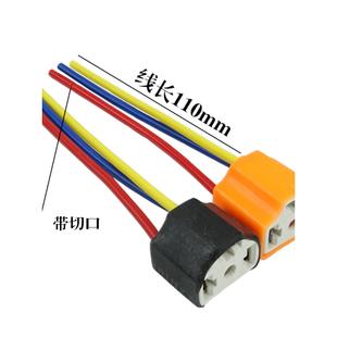 汽车大灯插座H4灯泡纯铜线插头接头灯座耐高温陶瓷汽车灯泡插座