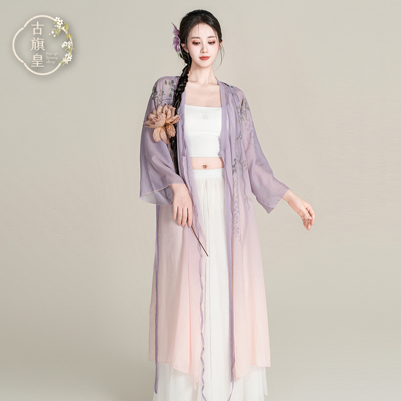 古旗皇古典舞蹈服印花仙气纱衣中国风飘逸外披练功服演出服上衣
