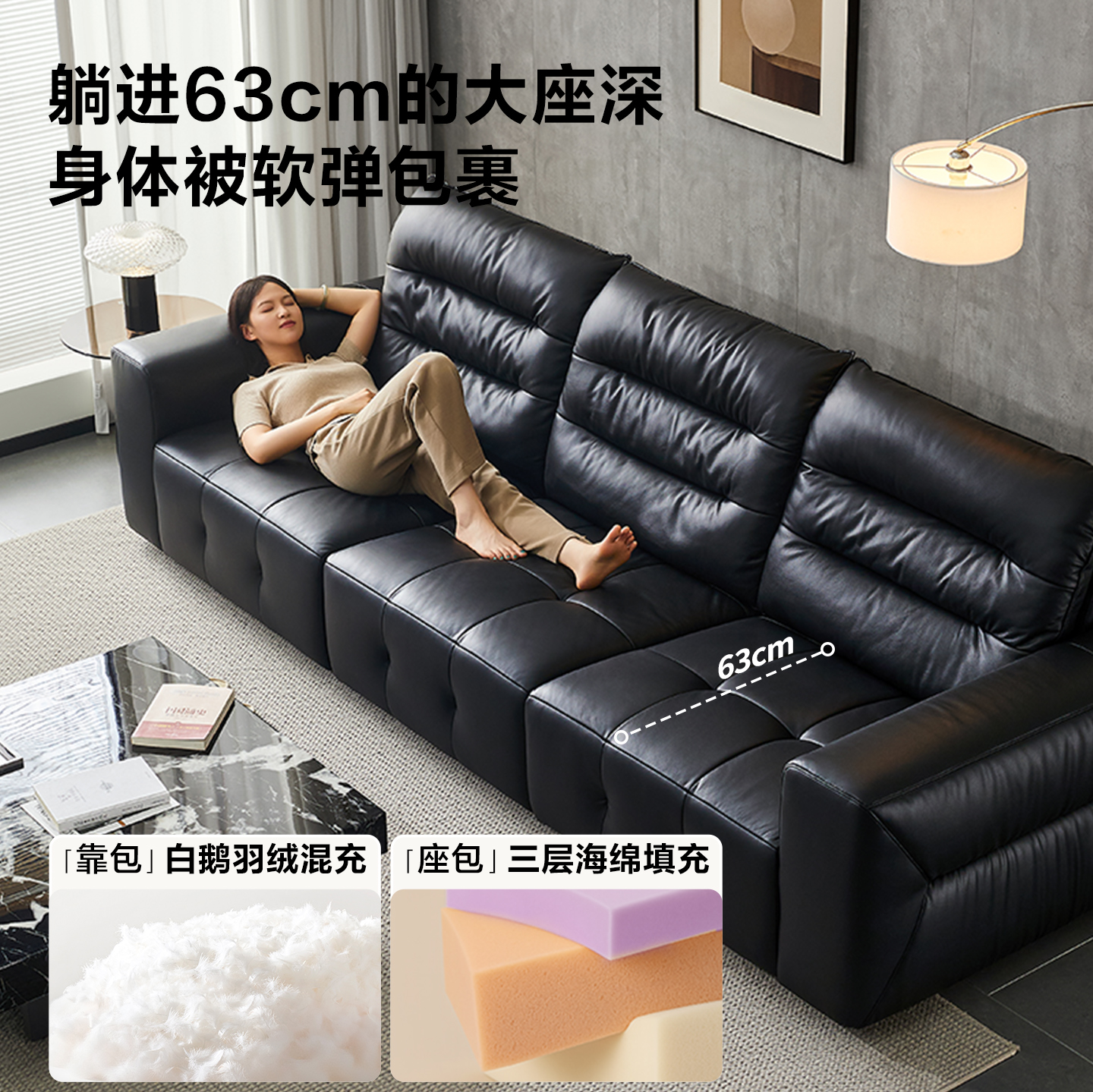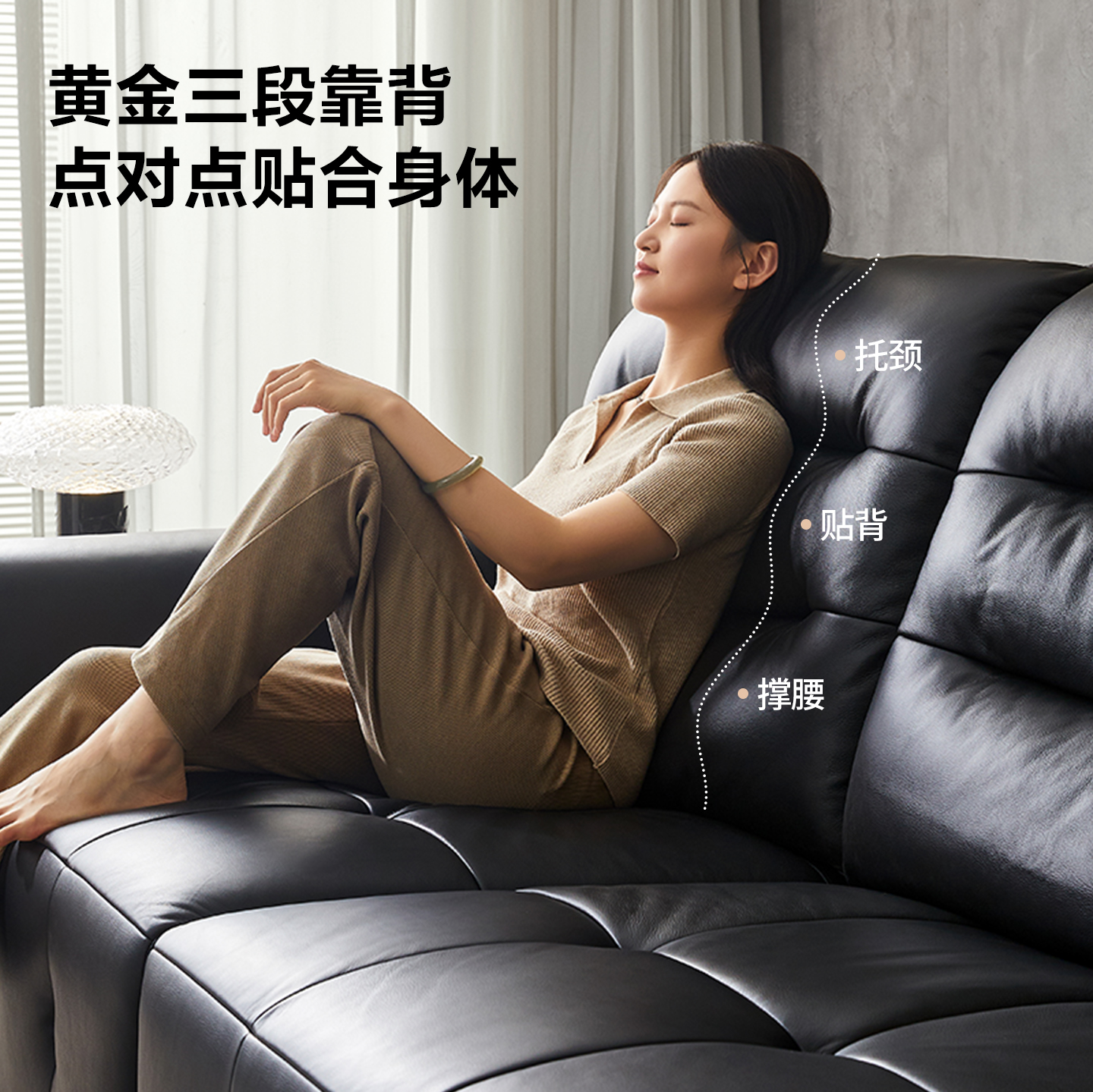 全友家居意式 小户型客厅直排黑色沙发 极简头层牛皮沙发2025新款