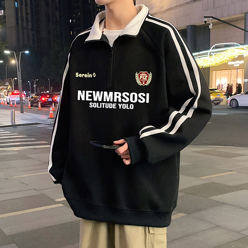三福2025秋冬新款 捆条半拉链卫衣男休闲复古立领插肩上衣507959