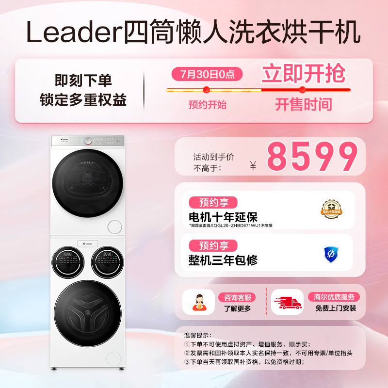 统帅家用全自动10kg大容量滚筒洗衣机515W 海尔Leader 换新补贴