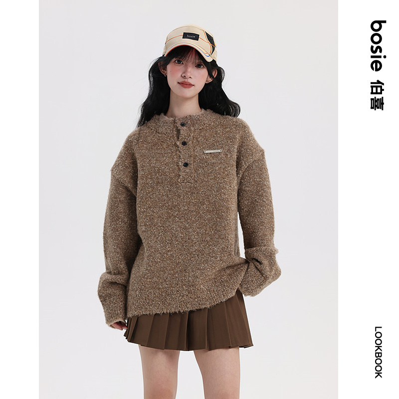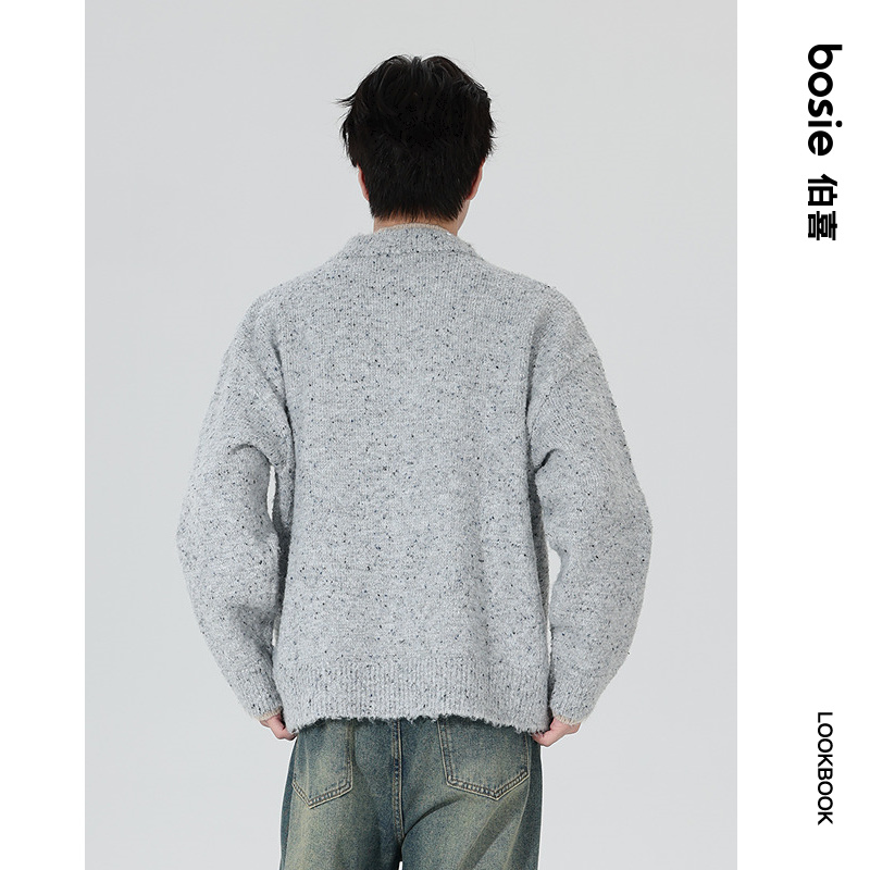 宽松慵懒风圆领毛衣男情侣休闲百搭毛衫 bosie伯喜2025年秋季 新款